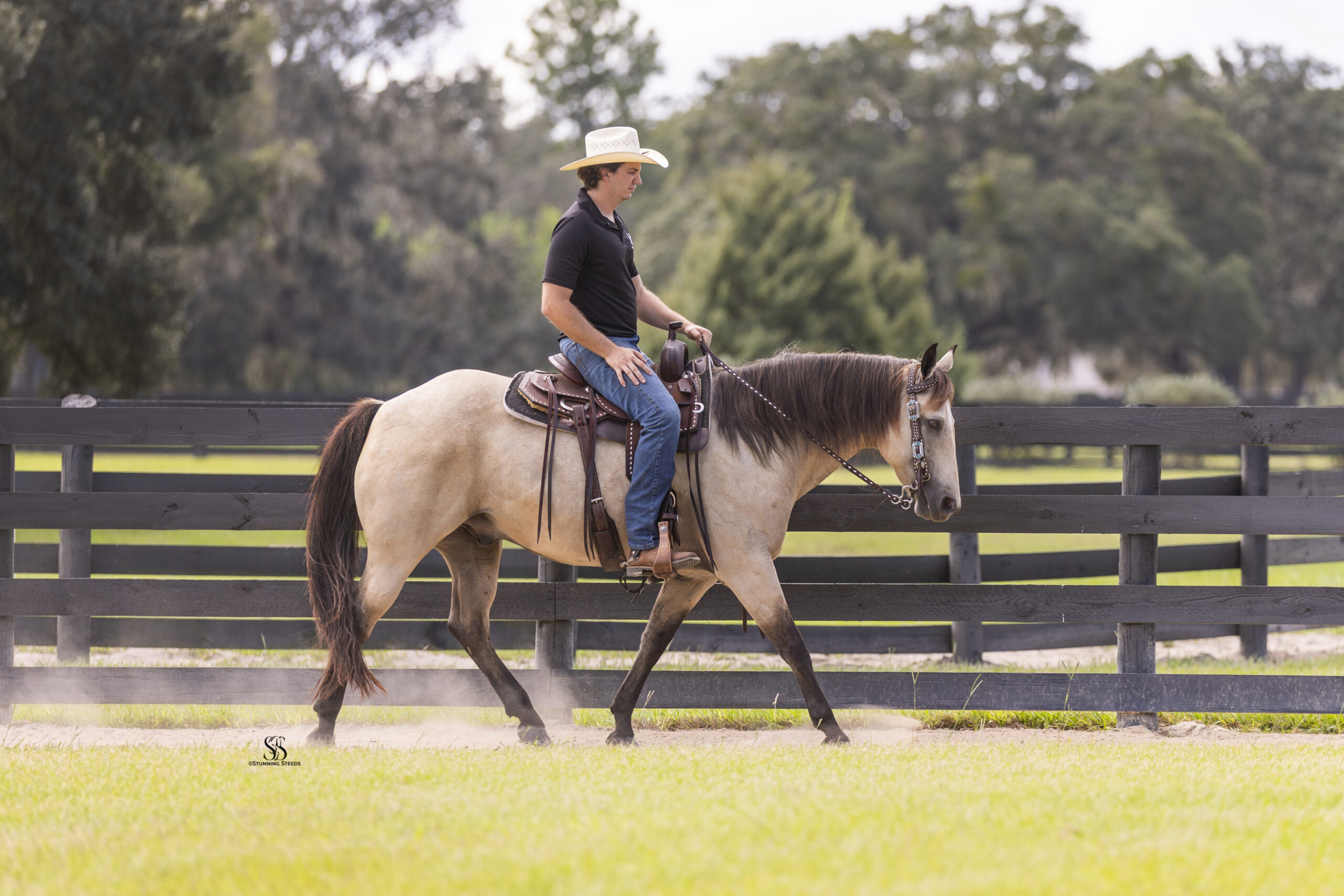 Tucker is a beautiful buckskin gelding and the definition of a true confidence-giving horse exceptionally kind, endlessly patient, and as reliable as they come. A proven trail partner with an unmatched ability to read his rider, he effortlessly adjusts his energy and responsiveness to suit any level of experience. With a confident rider, he steps up and performs like a seasoned professional; with a novice, he becomes steady, forgiving, and reassuring, always prioritizing safety and comfort.
