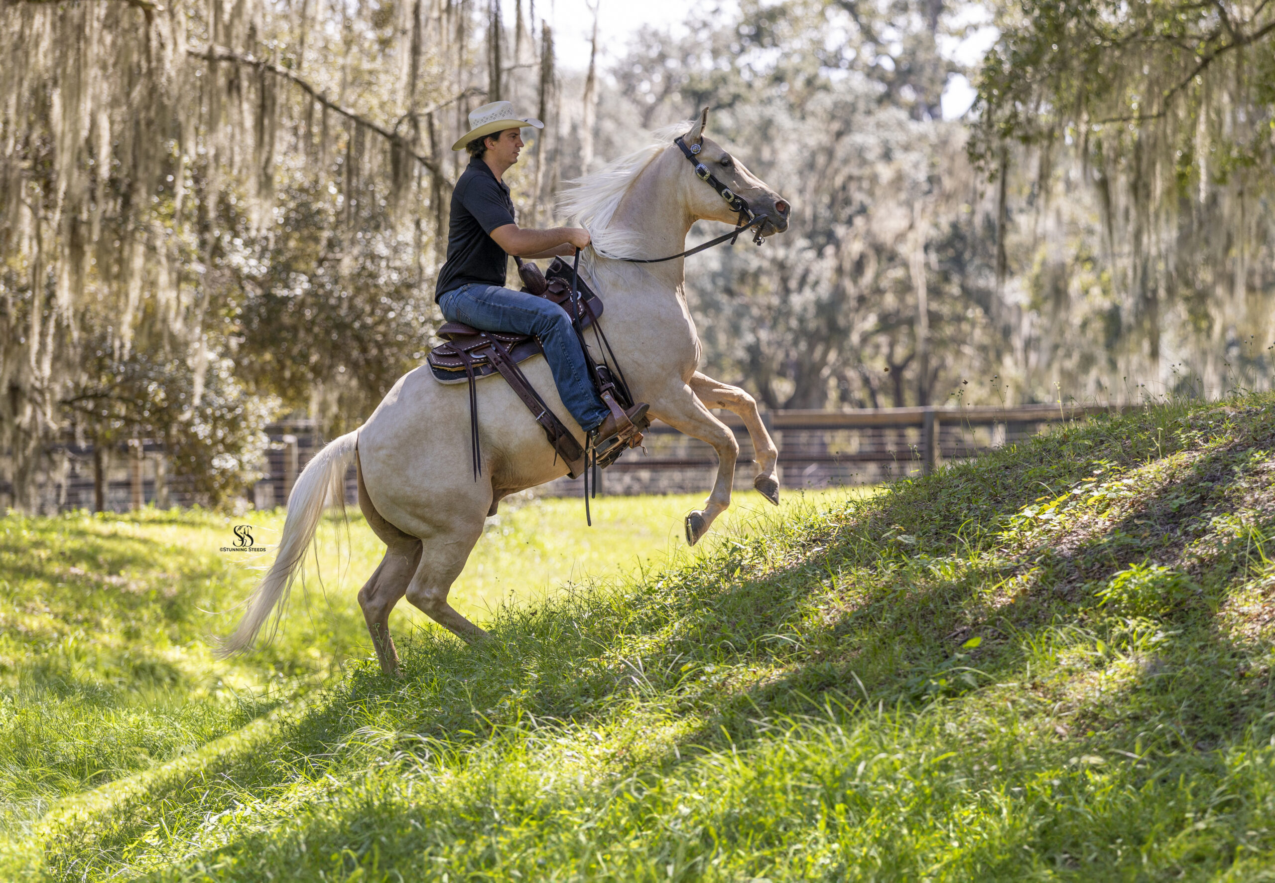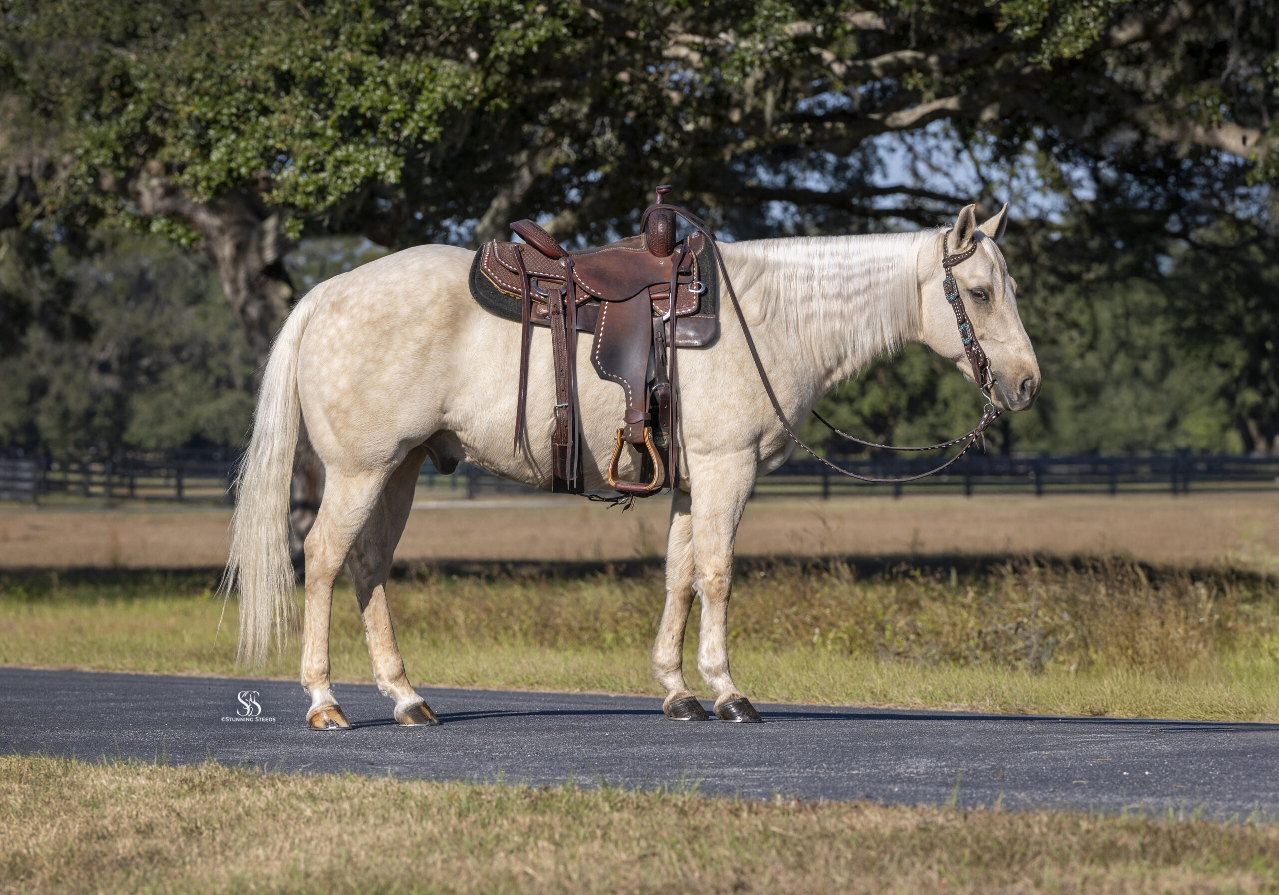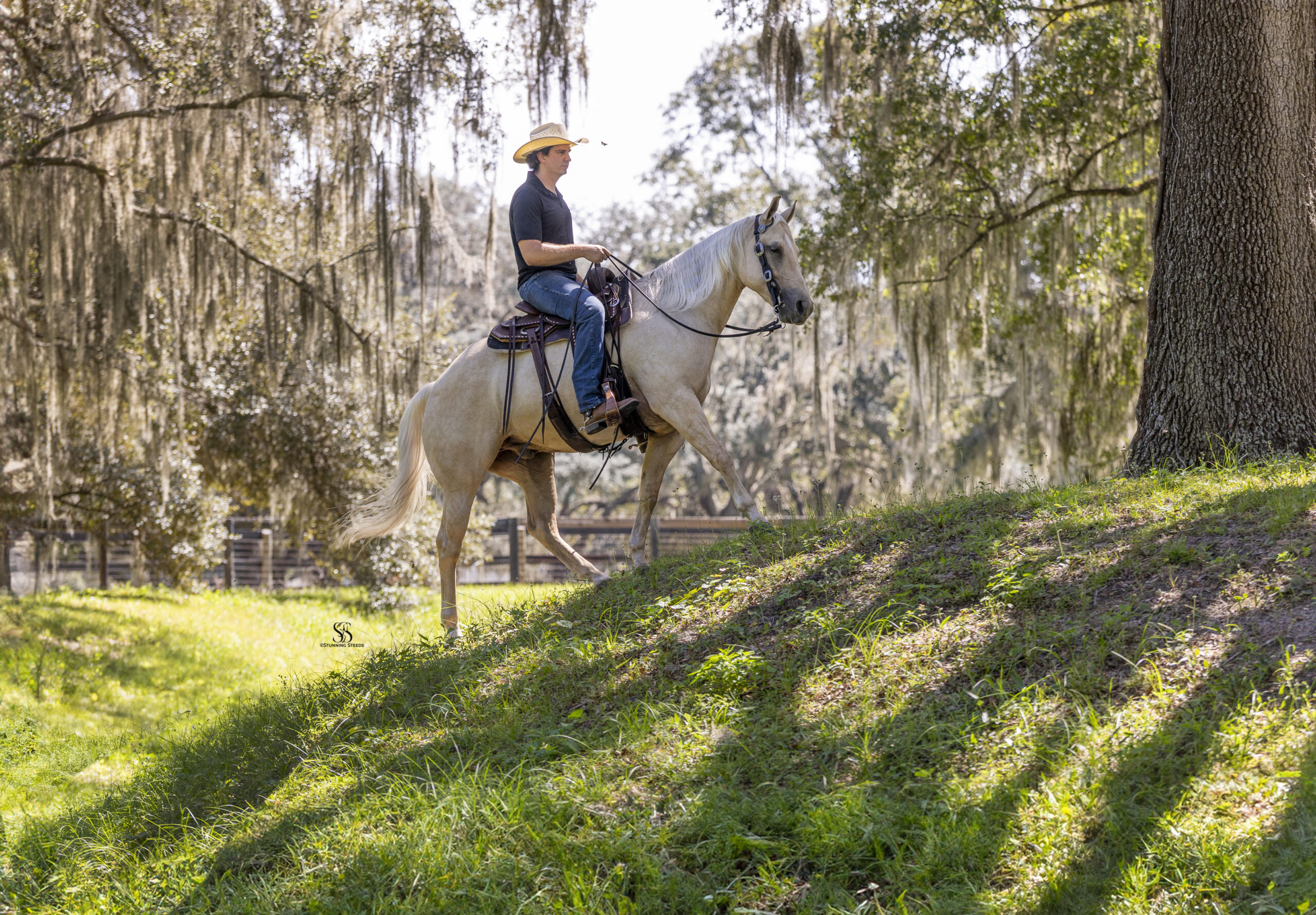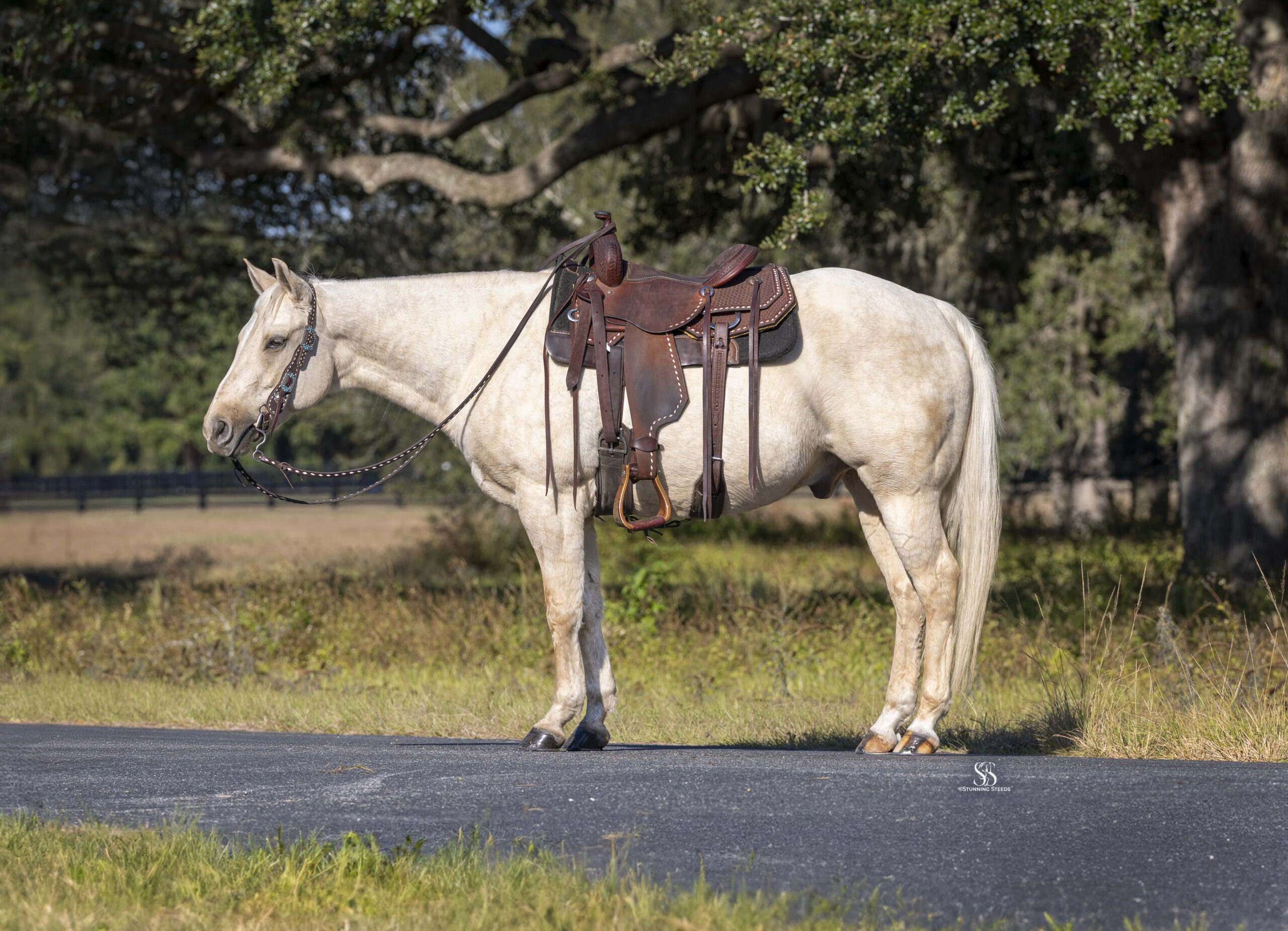 Yellowstone is a lovable Palomino gelding with a big heart, a sharp mind, and a personality that makes every ride enjoyable. Naturally charismatic and endlessly kind, he has a way of making you smile while always taking his job seriously under saddle.